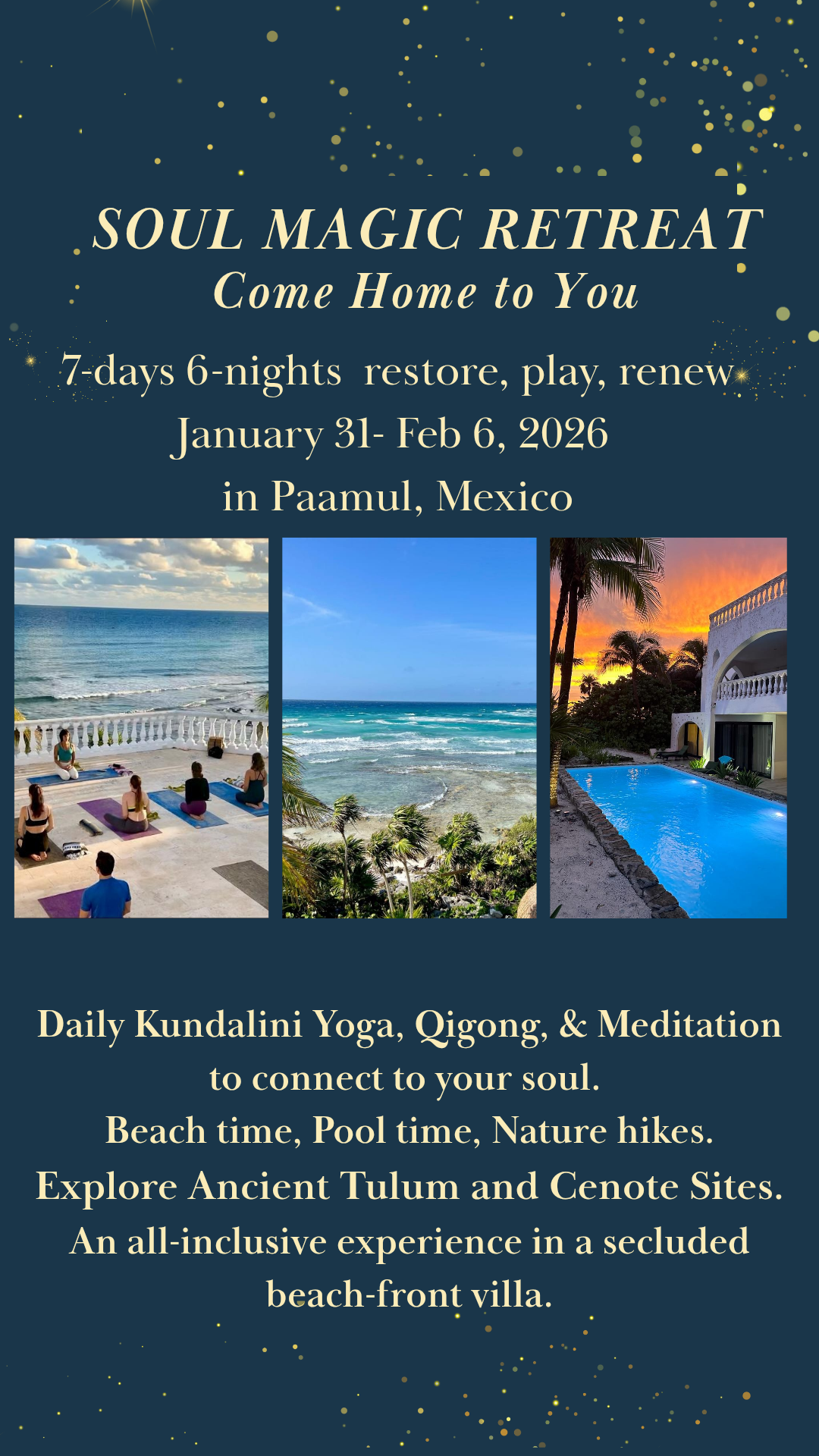 You desire to reconnect with yourself through daily yoga/qigong/meditation, the sea air, and the warm weather.